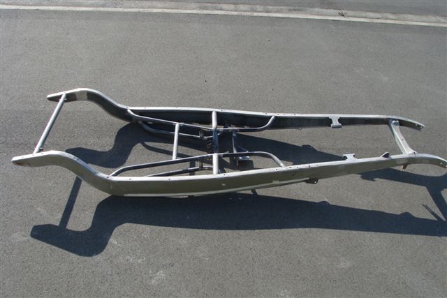 To be an original style reproduction frame rail fully boxed with modern type cross members including engine mounts and gear box mounts. Rear section kicked up to allow for channel of body. This to be built by Magoo Street Rods.