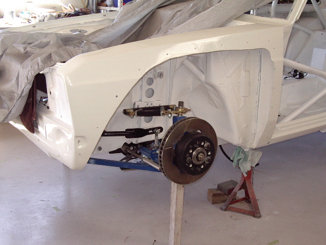 Front - Les Hunter designed front suspension, double “A” arm with Les Hunter fabricated uprights/spindles. Coil over shocks and adjustable front sway bar.