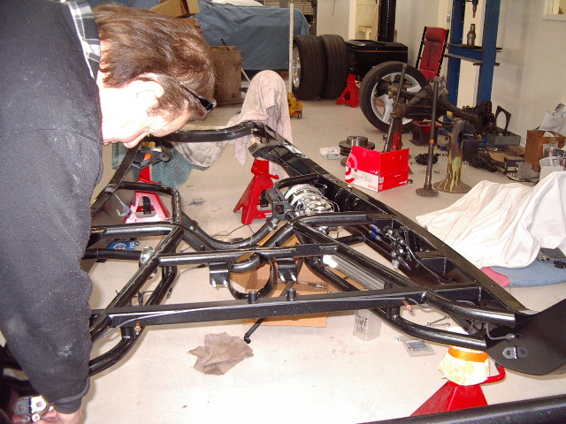 To have QA1 coil overs with ladder bars and a pan hard bar. Suspension parts and components to be supplied by Magoo Street Rods.