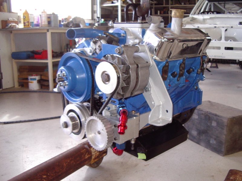 This is a 3.8 litre Buick V6 about 1980, stock crank, stock rods, polished and shot peened, forged pistons, 11.3:1 compression ratio. Modified factory cast iron heads with larger valves, roller rockers, Weiand Smokey Yunick intake manifold, 4 barrel 550 cfm vacuum secondary Holley carb. Purpose built steel flywheel with 10.5” heavy duty single diaphram clutch. Approx horsepower 280.GEARBOX